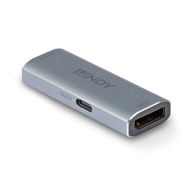 The Lindy DisplayPort 1.4 Repeater boosts DisplayPort signals for reliable transmission over longer cable runs
