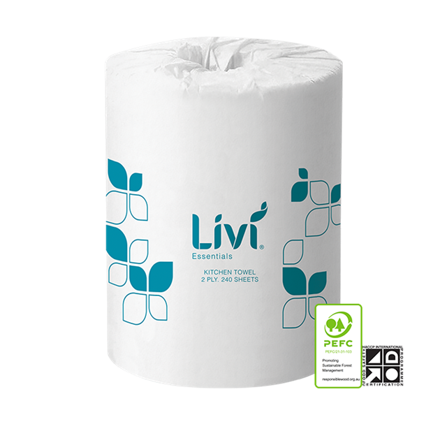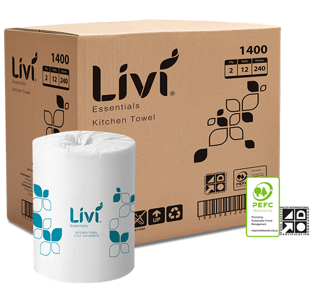 Livi 1400S Essentials Kitchen Roll 2 Ply Towel 240 Sheets Single Roll (12 rolls per carton) Adelaide Direct Stationers