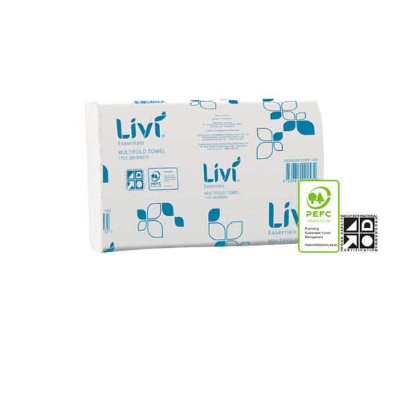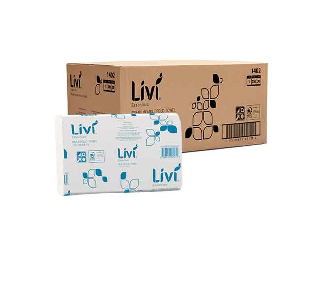 Livi 1402 Essentials Multifold Towel 1 Ply 200 Sheet Carton 20 (48 per Pallet) Adelaide Direct Stationers