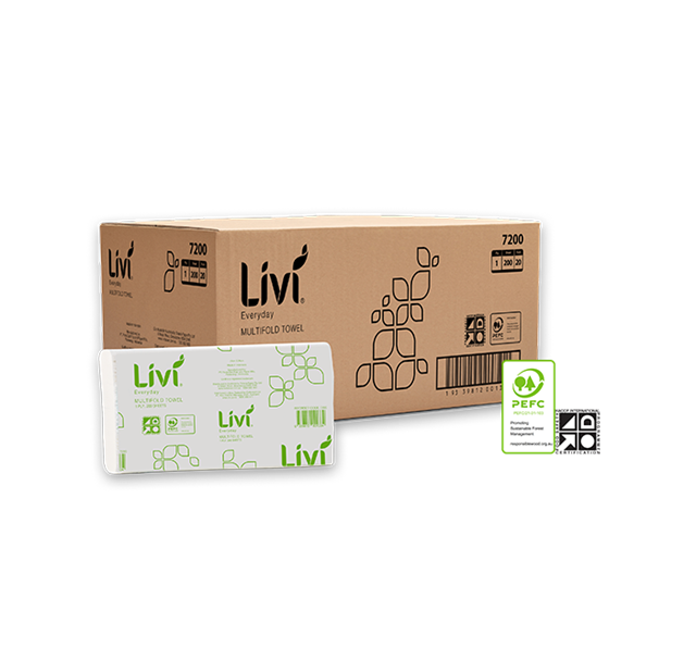 Livi Basics Multifold Towel – 7200 comes in packs of 200 sheets and a carton of 20 packs.