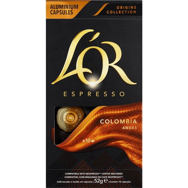 L'OR Espresso Coffee Colombia Intensity 8 (Sold as Each, 10 in a Box)