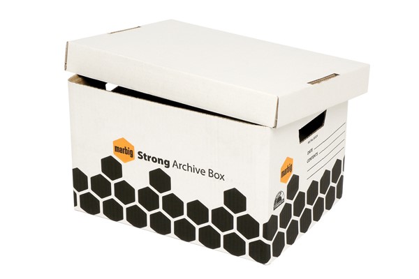 Marbig archieve box has triple end walls and double layer base provides superior stacking strength for unmatched stacking capability up to 10 high