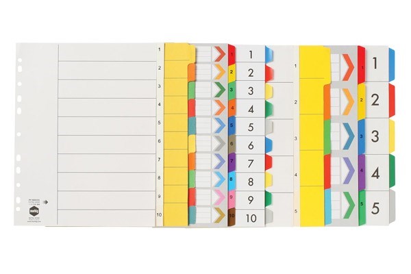 Available in multicolour with a white Table of Contents Page in 1 to 10 Tab with blank tabs 36200 and 1 to5 Tab with blank tabs 36100