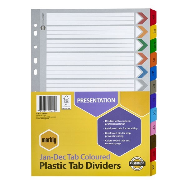 Marbig Dividers Jan to Dec Tab Reinforced A4 Assorted Adelaide Direct Stationers