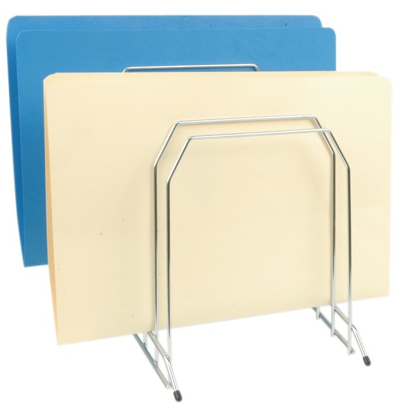 Chrome plated with protective rubber feet Graduated slots for holding mail, folders, loose papers, etc