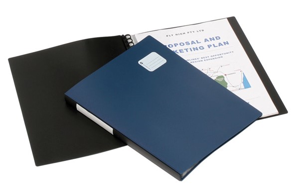 This refillable display book from Marbig has 20 removable, clear and durable pockets that can hold A4 sized documents and photos
