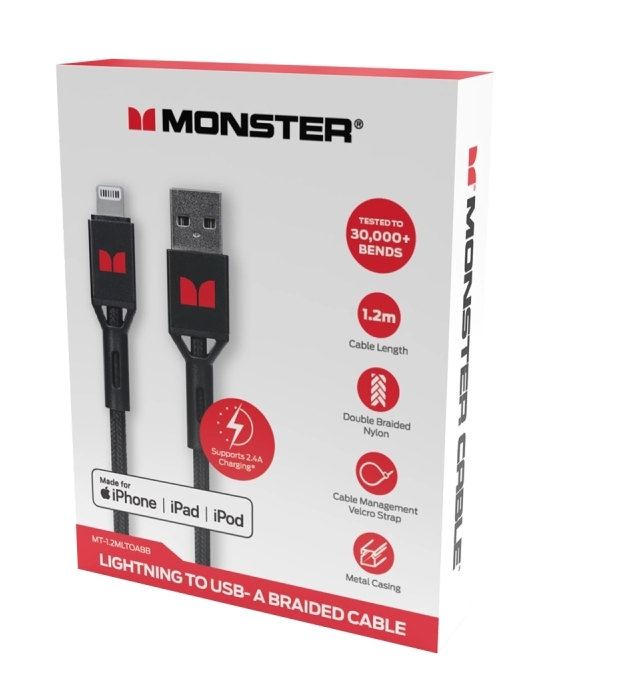 Monster Lightning to USB-A Braided Cable - Black 1.2m