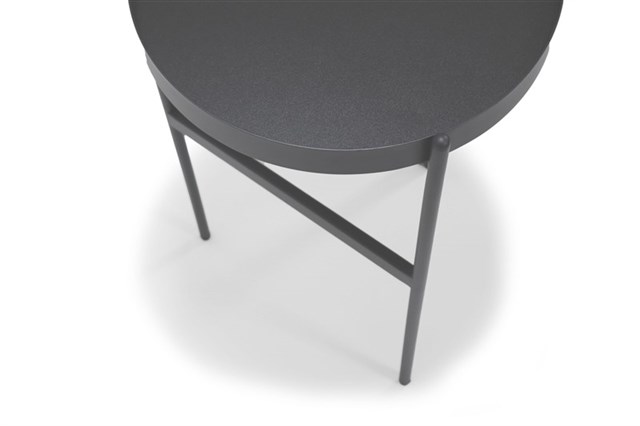 Nido Side Table -Black/Black 400mm Dia x 635mm H Black Melamine Table Top Black P/C Cross Brace Underframe Adjustable Leveling Feet E0 Enviroboard Table Top 5 Year Warranty