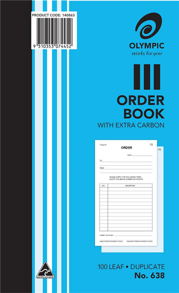 Olympic 638 Order Duplicate Book Blue (Sold as Each, 5 in a Pack) Adelaide Direct Stationers