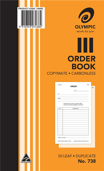 Olympic 738 Carbonless Order Book Duplicate (Sold as Each, 10 in a Pack) Adelaide Direct Stationers