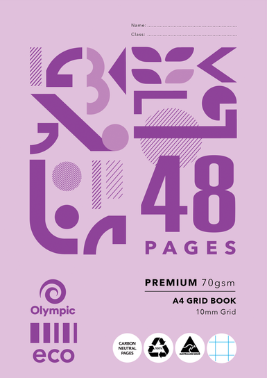 Olympic Eco Grid Book A4 10mm 48 Page (Sold as Each, 20 in a Pack) Adelaide Direct Stationers