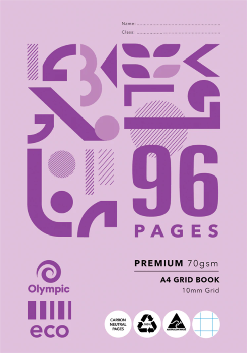 Olympic Eco Grid Book A4 10mm 96 Page (Sold as Each, 10 in a Pack) Adelaide Direct Stationers