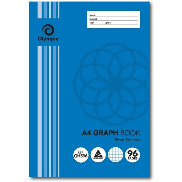 Olympic Graph Exercise Book A4 96 Page 5mm Squares (Sold as Each, 10 in a Pack) Adelaide Direct Stationers