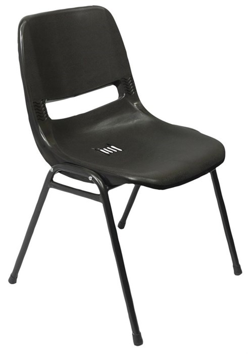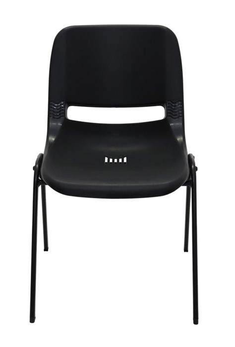 Heavy Duty Stackable Polypropylene Chair - Black Black P/C Four Steel Leg Underframe 1 Piece Black Polypropylene Shell With Perforation 120 Kg Weight Rating 3 Year Warranty