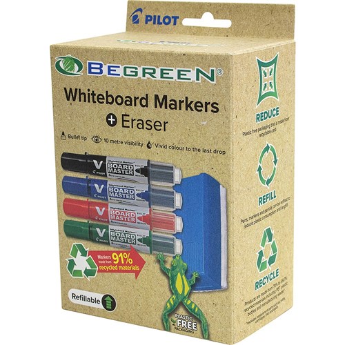 Pilot BegreeN Whiteboard Eraser + 4 x Bullet V Board Master Bulllet Tip Whiteboard Markers Adelaide Direct Stationers