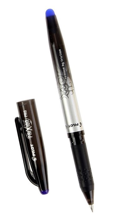 Pilot Frixion Pro Erasable blue gel pen features a unique thermosensitive ink which turns clear when rubbed with the end stud and has no eraser debris or paper abrasion