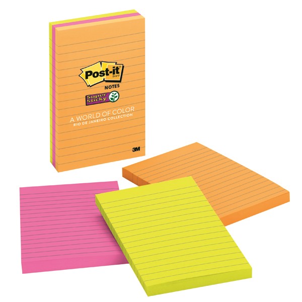 Post it Notes 6603SSUC Super Sticky Lined Assorted 3 Pack Adelaide Direct Stationers
