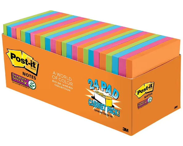 Post It Super Sticky Notes Rio de Janeiro Assorted Cabinet 76x76mm Pack 24 Adelaide Direct Stationers