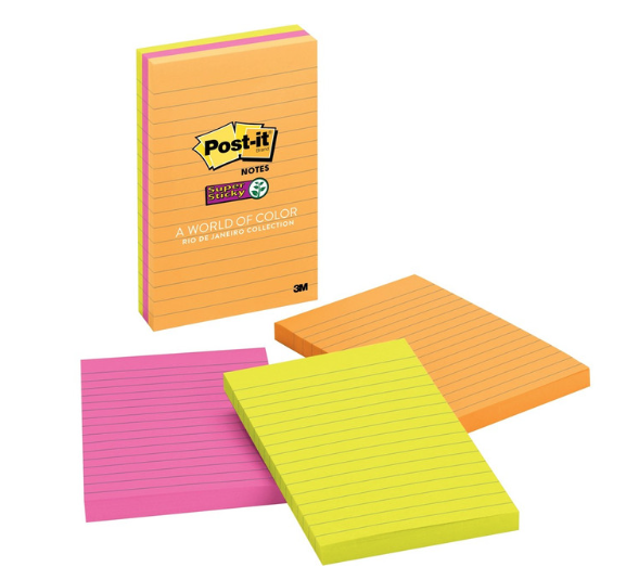 Post it Notes 6756SSUC Super Sticky Lined Assorted 6 Pack