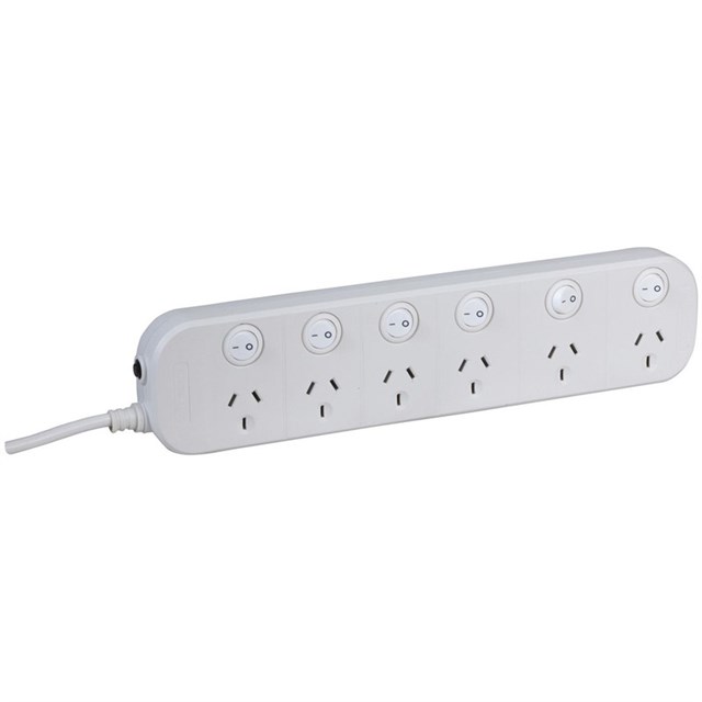 Power Board 6 Outlet with Overload and Surge Protection Adelaide Direct Stationers
