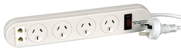 This Overload Voltage Protection Powerboard features 4 standard outlets, 3-pin socket, 240V AC with dual USB outlets at 5V output on a 1m electrical cord and On/Off power switch