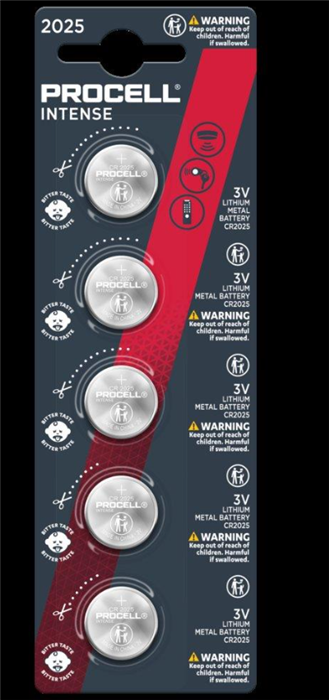 A powerful lithium battery, the Procell intense CR2025 Battery is made for peak performance in high drain electronics