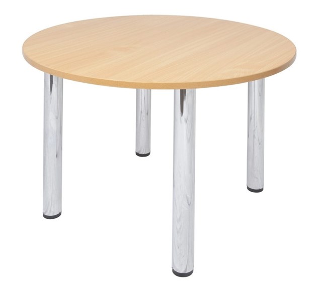 The Rapidline Chrome Leg Round table is a quality small meeting table featuring sturdy legs, adjustable feet and a 25mm top