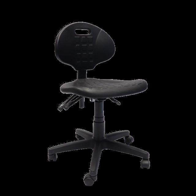 Rapidline Laboratory Chair Moulded Polyurethane Seat Pan & Back Rest Contoured Waterfall Seat Back Height Adjustment - Seat Tilt With Infinite Lock Back Tilt With Infinite Lock - Gas Height Adjustment5 O/A Height - 845mm - 960mm O/A Width - 470mm O/A Depth - 430mm Back Height - 350mm - 460mm Back Width - 410mm Seat Height - 420mm - 540mm Seat Width - 470mm Seat Depth - 435mm Star Black Nylon Base With Castors 110 Kg Weight Rating 5 Year Warranty