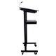 Rapidline Heavy Duty Lectern 1200mm H x 445mm W x 450mm D Black P/C Finished Steel Frame 15mm T Black Melamine Shelves Detachable Adjustable Battery Powered LED Light Angled Top Shelf For East Reading On Presentations Second Shelf For Storage Of Notes Easy Self Assembly Top Shelf Dimensions: 600mm W x 400mm D Second Shelf Dimensions: 550mm W x 260mm D Heavy Duty Lockable Castors 8 Year Warranty