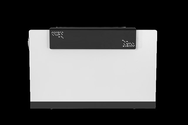 RC1809 Reception Counter - Natural White 1800mm W x 800mm D Worksurface - 1170mm H Overall Black P/C Cowl With Perforation Design and Black P/C Kick Plate E0 Rated Melamine Board 5 Year Warranty