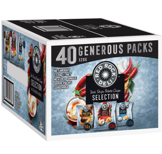 Includes a selection of popular Red Rock Deli flavours, such as Sea Salt, Sweet Chilli & Sour Cream, and Honey Soy Chicken