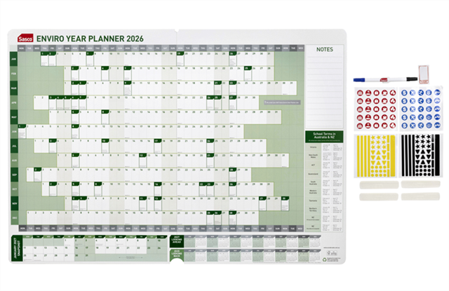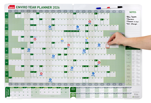 Sasco 2026 Enviro Year Planner 610*870mm Green Adelaide Direct Stationers