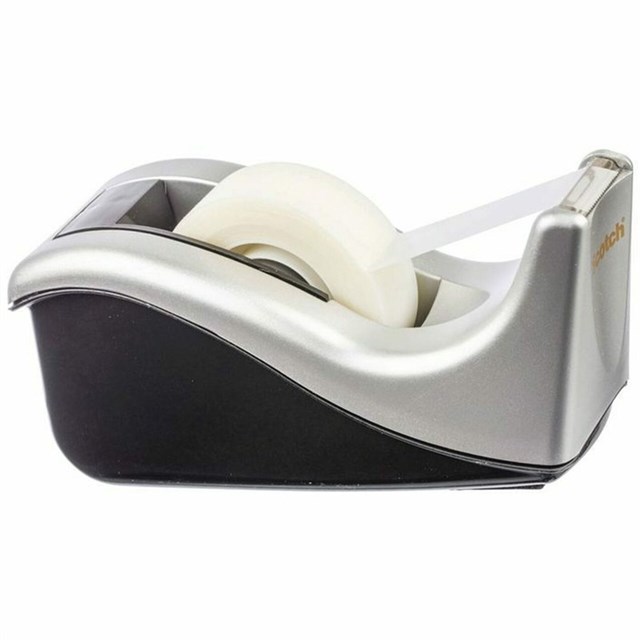 This Scotch Desktop Tape Dispenser features a weighted design, so it can be used with one hand