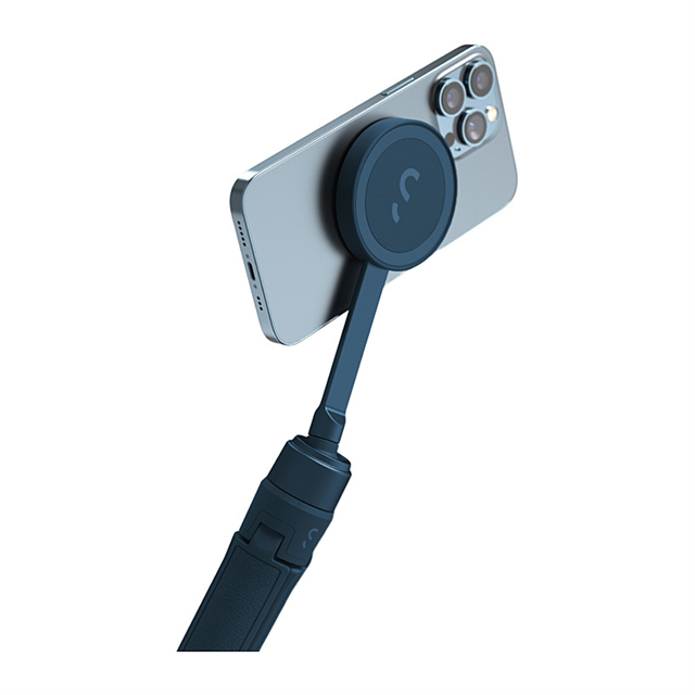It features a magnetic top mount that instantly connects to your smartphone (MagSafe-compatible for iPhone 12 and later, or via included sticker for universal use) and effortlessly switches between a stable tabletop tripod and an ergonomic handle grip/selfie stick