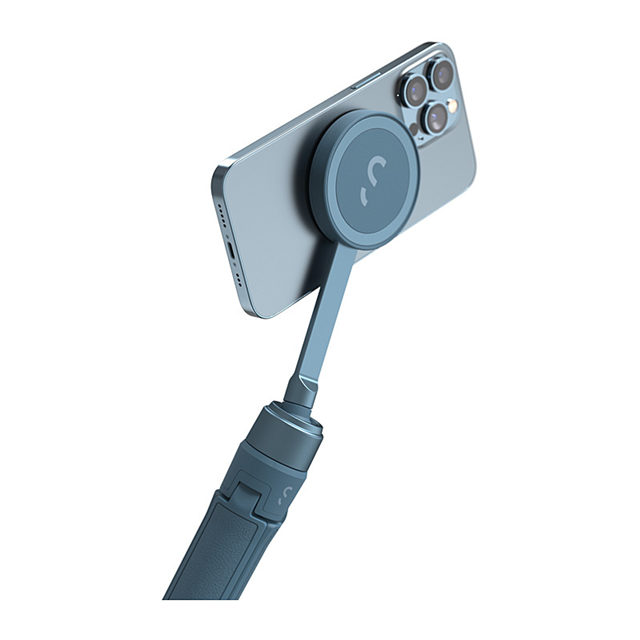 It features a magnetic top mount that instantly connects to your smartphone (MagSafe-compatible for iPhone 12 and later, or via included sticker for universal use) and effortlessly switches between a stable tripod and an ergonomic handle grip