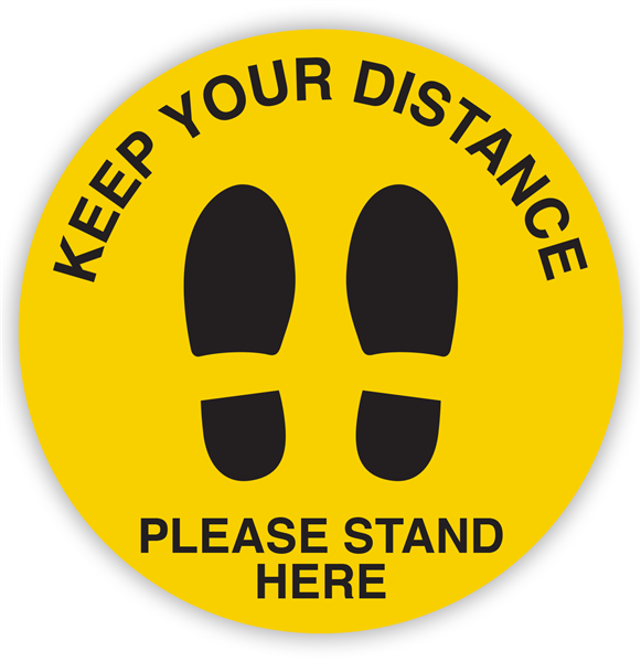 Sign Keep Your Distance 1.5m Please Stand Here in Circular Shoe Prints Adelaide Direct Stationers