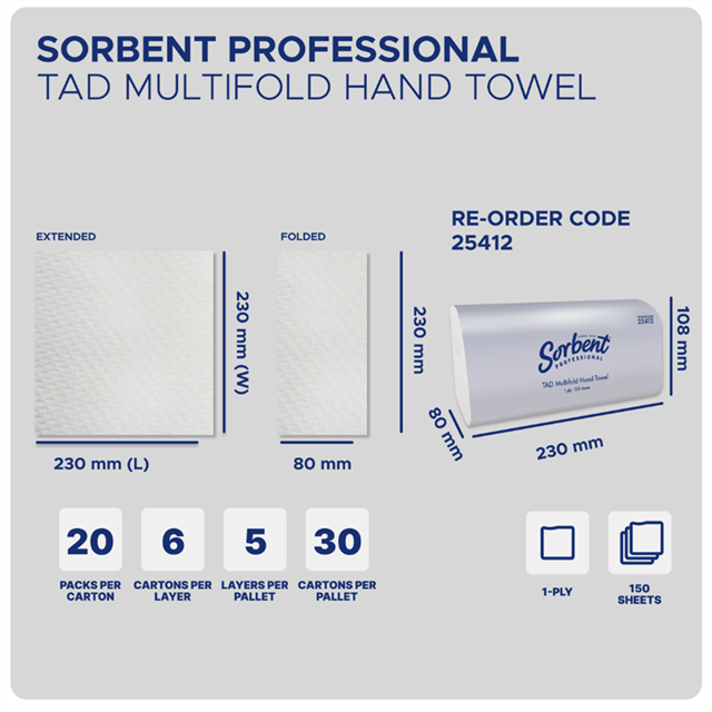 Sorbent 25412 Professional TAD Multifold Hand Towels 150s (30 boxes per pallet) Adelaide Direct Stationers