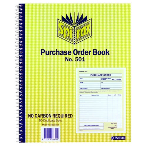 Spirax 501 Purchase Order Book Dup Carbonless (Sold as Each, 5 in a Pack) Adelaide Direct Stationers