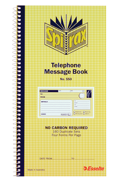 Spirax 550 Telephone Message Book (Sold as Each, 10 in a Pack)