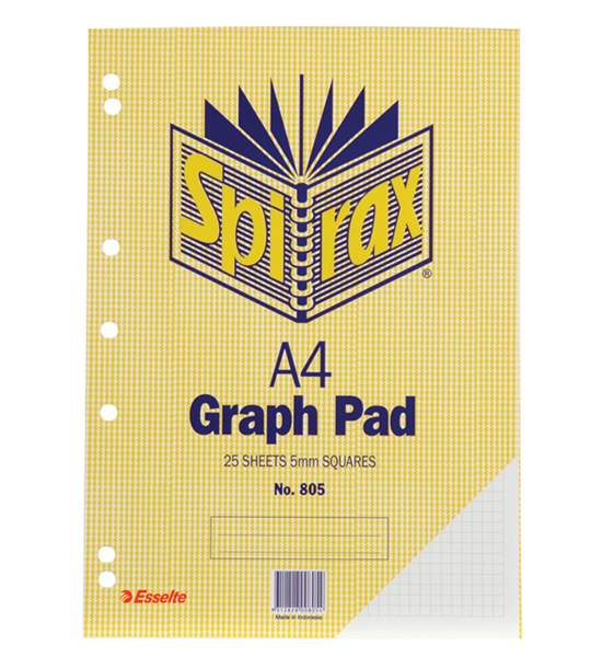 Spirax 805 Graph Pad 7 Hole Punched 50 Leaf 5mm A4 (Sold as Each, 10 in a Pack) Adelaide Direct Stationers