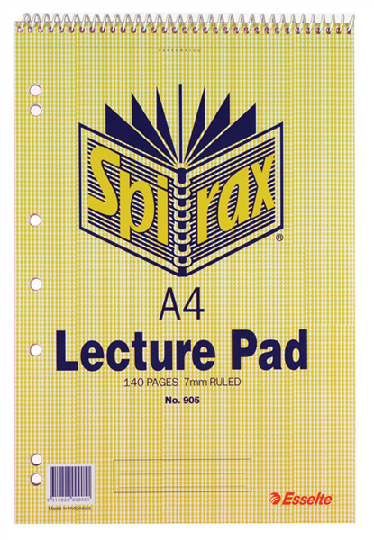 Spirax 905 Lecture Pad Top Spiral 7 Hole Punched A4 (Sold as Each, 10 in a Pack) Adelaide Direct Stationers