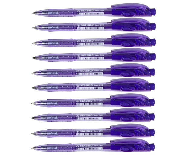 Stabilo 308 Liner Retractable Ballpoint Pen Medium Violet Box 10 Adelaide Direct Stationers