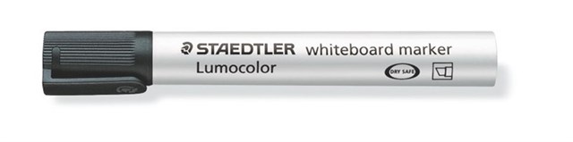Steadler 351 Lumocolor whiteboard marker can be dry-wiped from whiteboards and surfaces like glass and porcelain without leaving a trace.