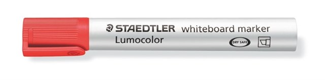Steadler 351 Lumocolor whiteboard marker can be dry-wiped from whiteboards and surfaces like glass and porcelain without leaving a trace