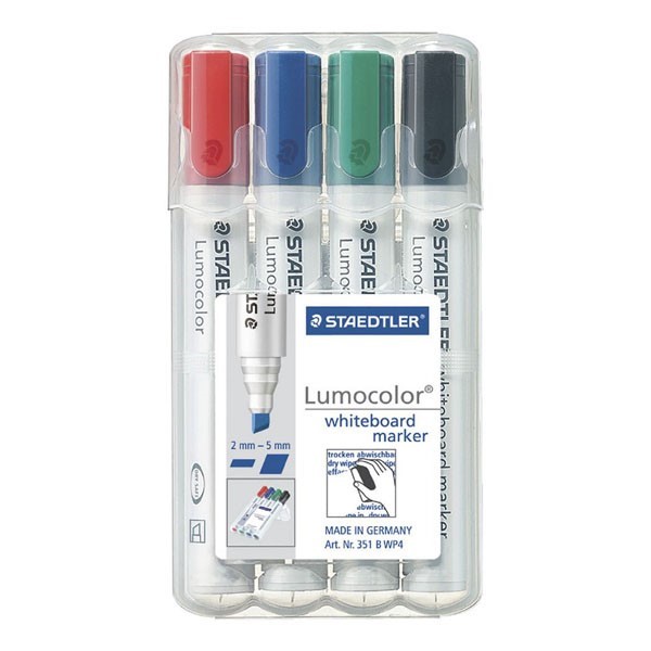 Staedtler Whiteboard Marker Chisel Point Assorted 4 Wallet Adelaide Direct Stationers