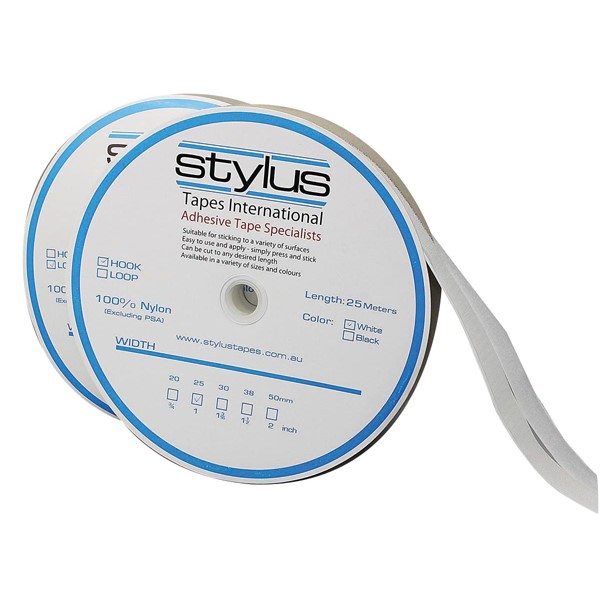 Stylus Self Adhesive Hook Only Strip 25mmx25m White