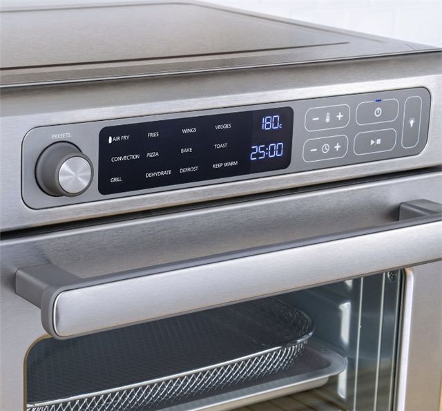 Air Fry (Fries, Wings, Veggies), Grill, Convection, Pizza, Bake, Toast, Dehydrate, Defrost, Keep Warm