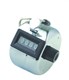 Four digit, stainless steel tally counter with the capacity to count to count up to 9,999.