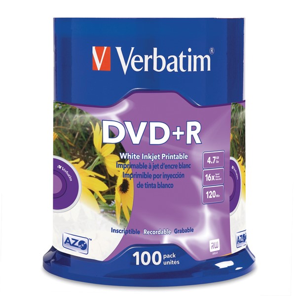 Verbatim DVD+R Inkjet Printable White 100 Pack