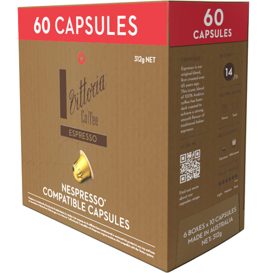 Vittoria Espresso Nespresso Compatible Coffee Capsules 60 Pack 312g Adelaide Direct Stationers